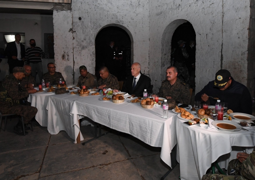 تقاسم رئيس الجمهورية قيس سعيد، مساء اليوم السبت 1 ماي 2021، مأدبة إفطار بالمنطقة العسكرية المغلقة بجبل الشعانبي بولاية القصرين مع مجموعة من ضباط الجيش و إطارات أمنية من حرس وطني و شرطة.