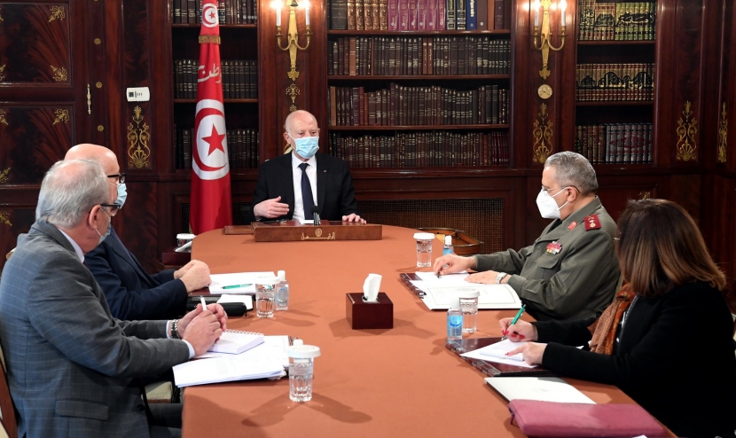 وتوجه رئيس الدولة في مستهل الاجتماع بجزيل الشكر لهم على الجهود التي يبذلونها ولكل العاملين معهم في هذه الظروف الصعبة التي تمر بها تونس والإنسانية جمعاء.