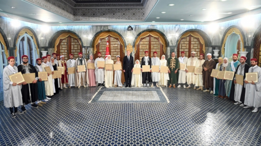 أشرف رئيس الجمهورية قيس سعيّد، ظهر اليوم الإربعاء 19 أفريل 2023 بقصر قرطاج، على موكب تسليم جوائز الفائزين في الدورة 54 للمسابقة الوطنية لحفظ القرآن الكريم لسنة 1444 هــ/ 2023 م.
