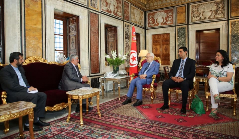 استقبل الأستاذ راشد الغنوشي رئيس مجلس نوّاب الشّعب صباح اليوم 16 جوان 2020 السيد محمد رضا رؤوف شيباني سفير الجمهورية الايرانية الاسلامية بحضور السيد طارق الفتيتي النائب الثاني لرئيس المجلس والسيدة سماح دمّق رئيسة لجنة الحقوق والحريات، بقصر باردو.