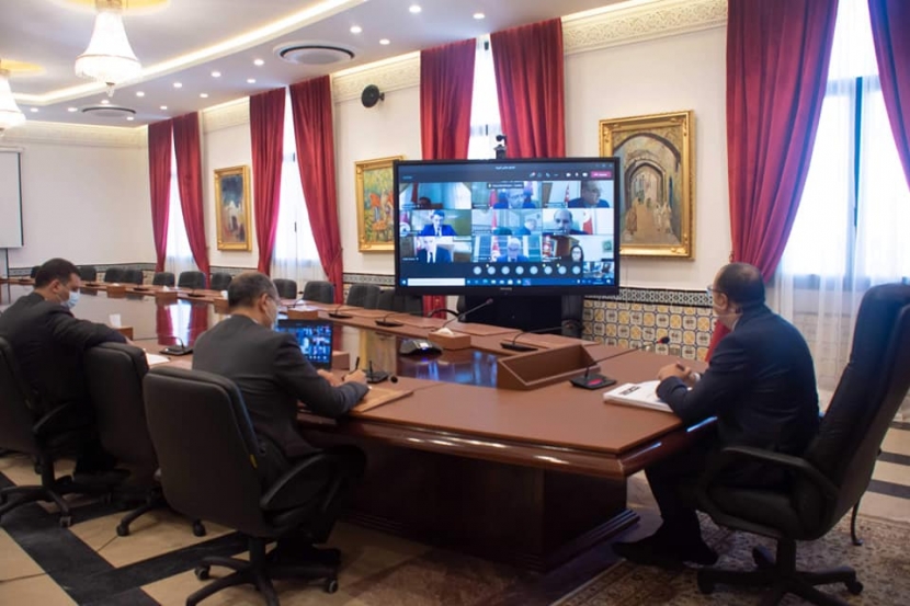 أشرف رئيس الحكومة هشام مشيشي صباح اليوم الخميس 29 أفريل 2021 بقصر الحكومة بالقصبة على اجتماع مجلس الوزراء عبر تقنية التواصل عن بعد.