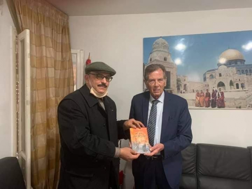 تسلم هائل الفاهوم سفير دولة فلسطين بتونس اليوم المجموعة القصصية للكاتب والصحفي التونسي صلاح بوزيان ،لدى استقبال الفاهوم له بمقر سفارة دولة فلسطين. والكاتب بوزيان باحث في الحضارة ، ورئيس المعهد العالي للعلوم الإنسانية بالقيروان التابع لجامعة الزيتونة ،ورئيس فرع اتحاد الكتاب بالقيروان ،وعضو البرلمان الدولي لعلماء التنمية . يذكر ان المجموعة القصصية للكاتب بوزيان تحتل عناوينها فلسطين قضية وشعب من منظور ثقافي وتشير لنضال شعب فلسطين بمنظور يختلف نوعا ما عن السرد الذي كان سائدا ، المجموعة بعنوان "غرس الله وحسن والماريشال". الفاهوم ثمن دور المثقفين والنخب الوطنية في نشر ثقافة الوعي وكشف الحقائق الموضوعية لمواجهة التحديات القائمة في المرحلة الراهنة