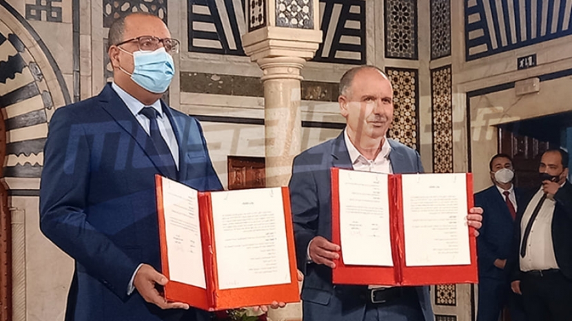 تم منذ قليل الإمضاء على البيان المتعلق بالمسار التشاركي في الإصلاحات خاصة في ما يتعلّق بالمؤسسات والمنشآت العمومية بين رئاسة الحكومة والاتحاد العام التونسي للشغل لانطلاق الاصلاحات في المؤسسات العمومية ومنظومة الجباية والدعم.