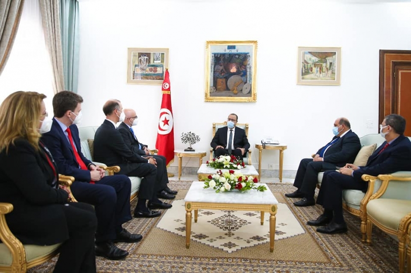 تحادث رئيس الحكومة هشام مشيشي صباح اليوم الخميس 06 ماي 2021 بقصر الحكومة بالقصبة مع الرئيس المدير العام لشركة "سنام" الإيطالية ماركوس الفيرا بحضور سفير إيطاليا بتونس لورانزو فانارا ووزير الصناعة والطاقة والمناجم بالنيابة محمد بوسعيد.