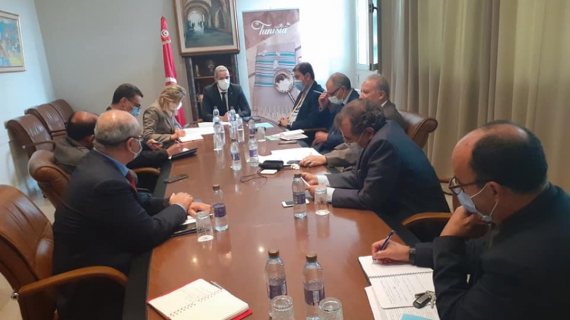 استقبل وزير السياحة محمد المعز بلحسين، مساء الاثنين 25 أكتوبر 2021 بمقر الوزارة، بوالي توزر محمد أيمن البجاوي مرفوقا بنصر الدين الشابي رئيس جمعية المهرجان الدولي للواحات و حسن الزرقوني مدير مهرجان روحانيات.