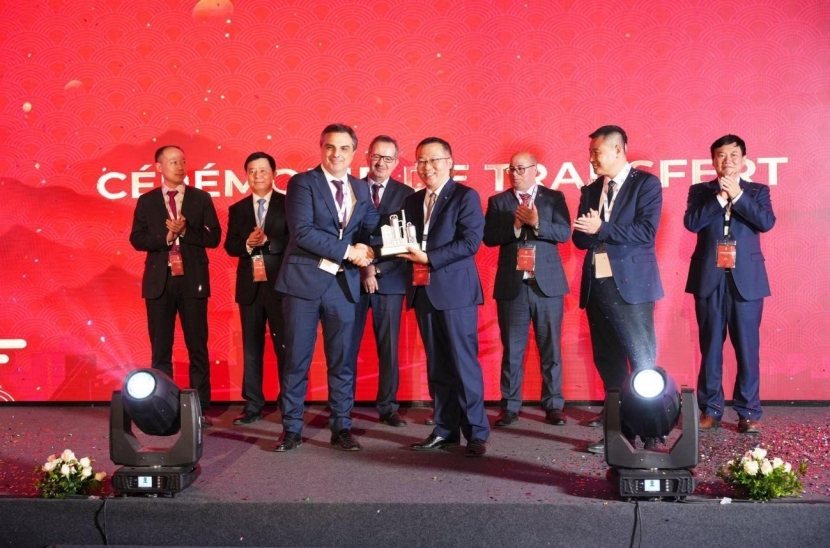 على أنغام الموسيقى التونسية المبهجة، تسلّم السيّد Rong Yakun من السيّد Mario Pinto، مدير الاندماج والاستحواذ في مجموعة Votorantim، نموذج المصنع، الذي قام بتسليمه بعد ذلك إلى فريق إدارة شركة الاسمنت جبل الوسط، مما يمثل بداية عهد جديد للشركة.