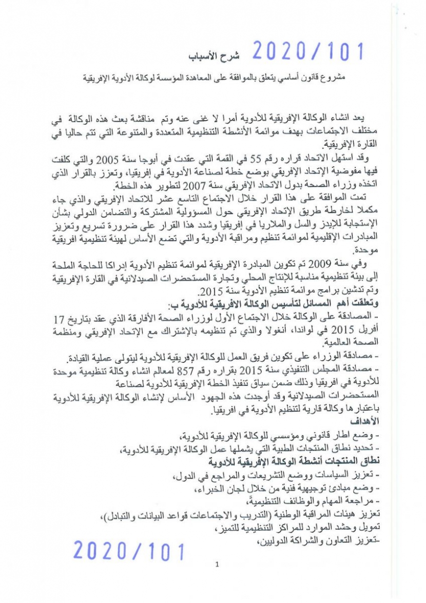 البرلمان يصادق على المعاهدة المؤسسة لوكالة الأدوية الإفريقية‎‎