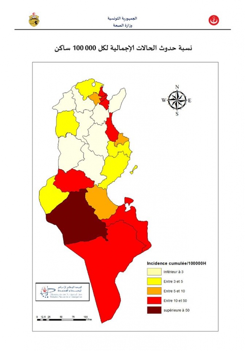 وقد تم تسجيل 5 تحاليل إيجابية، 04 منها لحالات إصابة سابقة لا تزال حاملة للفيروس و01 حالة إصابة جديدة وافدة من ضمن الذين تم إجلاؤهم ووضعهم في مراكز الحجر الصحي الإجباري، ليبلغ العدد الجملي للمصابين بهذا الفيروس، وذلك بعد التثبت من المعطيات وتحيينها 1077 حالة مؤكدة موزعة كالآتي: 960 حالة شفاء و48 حالة وفاة (لم يتم تسجيل حالات وفاة جديدة) و69 حالة إصابة لا تزال حاملة للفيروس وهي بصدد المتابعة من بينها 2 مقيمين حاليا في المستشفيات.