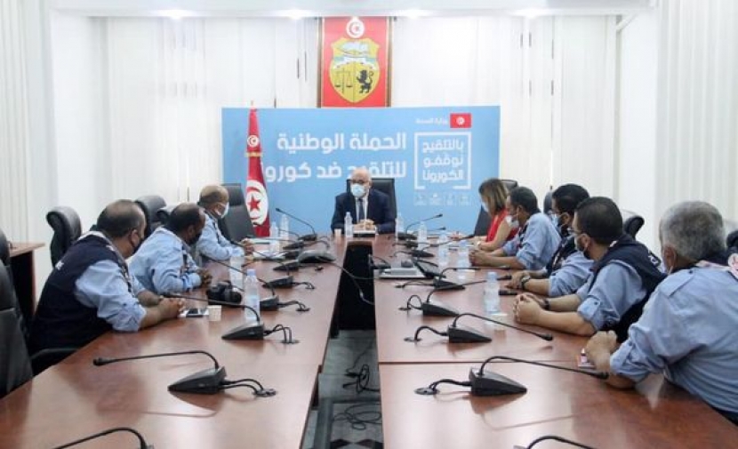 ظهر اليوم الجمعة 16 جويلية 2021 بممثلي الكشافة التونسية وذلك للنظر في سبل إسهام متطوعي هذه المنظمة العريقة في تنظيم الإستقبال بمراكز التلقيح وذلك في نطاق إنجاح الحملة الوطنية للتلقيح ضد كوفيد-19.