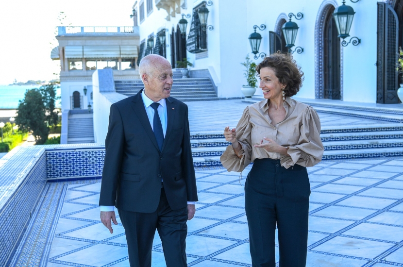 استقبل رئيس الجمهورية، قيس سعيّد، بعد ظهر يوم الاثنين 07 جوان 2021 بقصر قرطاج السيّدة "أودري أزولاي"، المديرة العامة لمنظمة الأمم المتحدة للتربية والعلم والثقافة "اليونسكو"، التي تؤدّي زيارة إلى تونس في إطار مشاركتها في فعاليات الدورة الثامنة لمؤتمر الدول الأطراف في اتفاقيّة منظمة اليونسكو حول التراث الثقافي المغمور بالمياه.