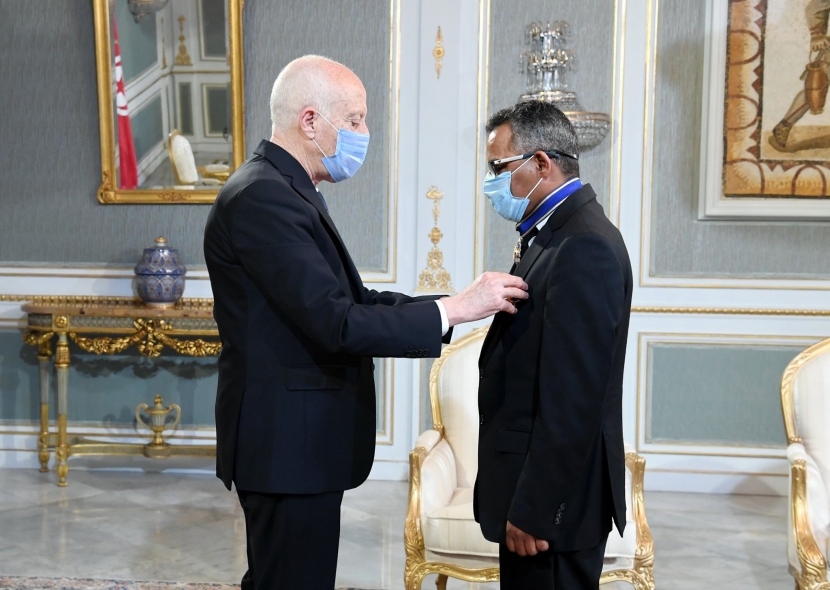 رئيس الجمهورية قيس سعيد يوسم الدكتور محمد النوري بنمبارك طبيب الإنعاش بالمستشفى الجهوي بقبلي‎.