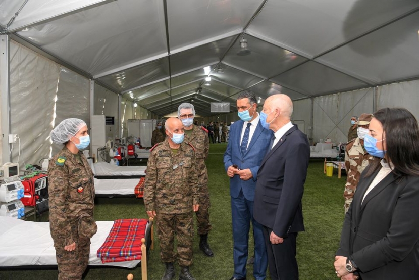 أدّى رئيس الجمهورية قيس سعيّد اليوم الاثنين 11 ماي 2020 زيارة إلى المستشفى الميداني الذي تمّ تركيزه في قبلي لمواجهة انتشار فيروس الكورونا في هذه الجهة. وقد اطلّع رئيس الجمهورية على جاهزية هذا المستشفى الذي تولّت كلّ من الإدارة العامة للصحة العسكرية والإدارة العامة للهندسة العسكرية والفيلق الصحراوي بقبلي عملية تركيبه. والجدير بالذكر أنّ مبادرة رئيس الجمهورية جاءت على إثر التفشّي الخطير لفيروس كورونا في ولاية قبلي واستجابة لنداءات الاستغاثة من أهالي الجهة. ويضمّ المستشفى مائة سرير منها 20 سرير إنعاش ومعدّات طبية قابلة للتفكيك والتركيب بسرعة وهو مجهّز بمولّدات كهربائية وأجهزة تكييف جدّ متطورة تمكنّه من الاستقلالية الطاقية.