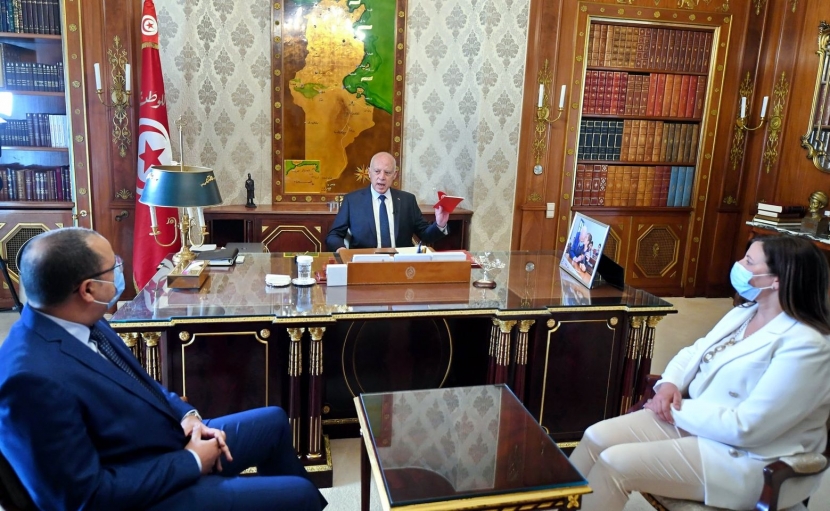 استقبل رئيس الجمهورية قيس سعيّد، ظهر اليوم الجمعة 11 جوان 2021 بقصر قرطاج، كلّا من رئيس الحكومة المكلّف بتسيير وزارة الداخلية السيّد هشام مشيشي، ووزيرة العدل بالنيابة السيّدة حسناء بن سليمان.