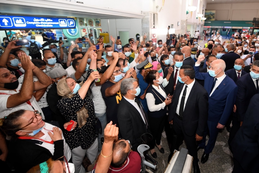 تحوّل رئيس الجمهورية قيس سعيّد، اليوم الإثنين 16 أوت 2021، إلى مطار تونس قرطاج الدولي أين عاين سير العمل بمختلف الفضاءات واطّلع، كذلك، على الظروف التي تتمّ فيها إجراءات السفر واستمع إلى ملاحظات ومقترحات عدد من المواطنين.