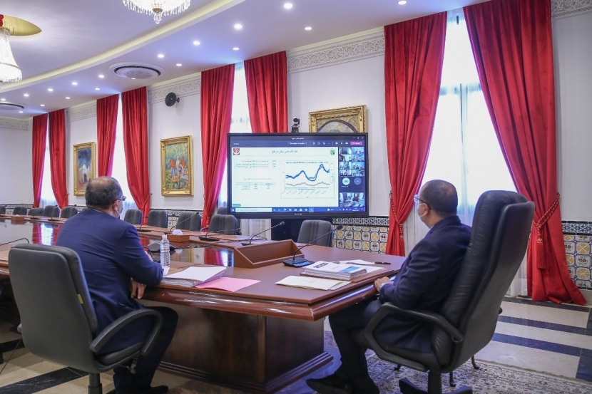 أشرف رئيس الحكومة هشام مشيشي اليوم الاثنين 07 جوان 2021 بقصر الحكومة بالقصبة، على اجتماع مجلس الوزراء عبر تقنية التواصل عن بعد.