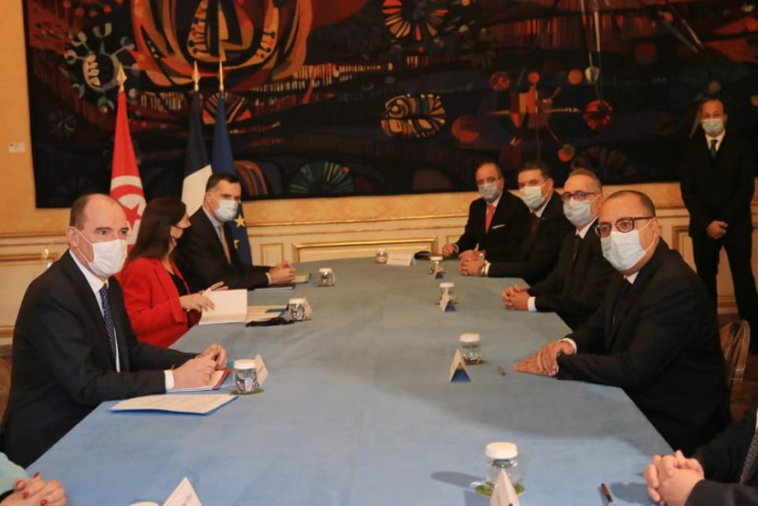 انطلق لقاء رئيس الحكومة هشام المشيشي بالوزير الأول الفرنسي جون كاستكس في قصر ماتينيون بالعاصمة الفرنسية باريس.