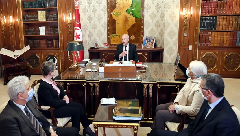 أشرف رئيس الجمهورية قيس سعيد، اليوم الاثنين 3 جانفي 2022 بقصر قرطاج، على إجتماع ضم السيدة نجلاء بودن رمضان، رئيسة الحكومة، والسيدة ليلى جفال، وزيرة العدل، والسيد عماد مميش، وزير الدفاع الوطني، والسيد توفيق شرف الدين، وزير الداخلية.