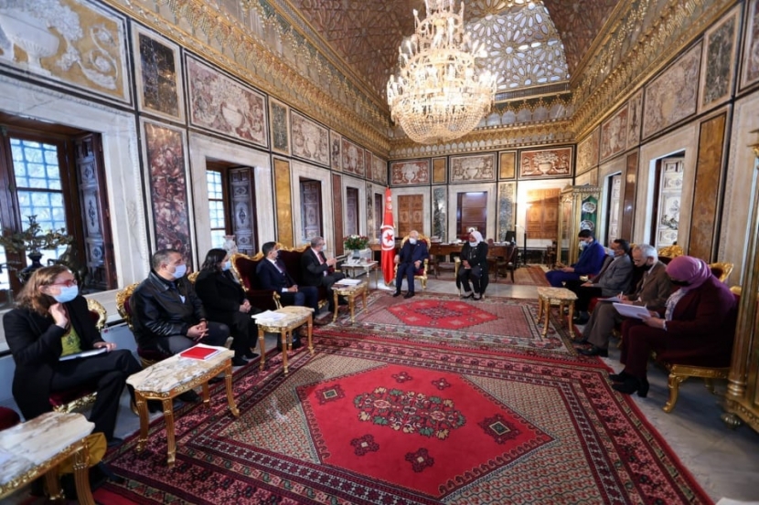 استقبل الأستاذ راشد الغنوشي رئيس مجلس نواب الشعب صباح اليوم الثلاثاء 23 فيفري 2021 بقصر باردو السيّد عدنان بوعصيدة، رئيس الجامعة الوطنية للبلديات التونسية مرفوقا بالسيّدة بسمة معتوق، نائبة الرئيس والسيّد محمّد مزوغـي، الكاتب العام، والسيّد رضا اللوح، أمين المال، والسيّدة وئام بن مصطفى، المديرة التنفيذية للجامعة، وذلك بحضور السيدة جميلة دبش كسيسي مساعد الرئيس المكلفة بالعلاقات مع المواطن ومع المجتمع المدني .