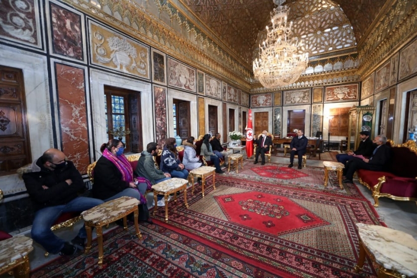 استقبل الاستاذ راشد خريجي الغنوشي رئيس مجلس نواب الشعب بعد ظهر اليوم الجمعة 19 مارس 2021 مجموعة من الإعلاميين العاملين بقناة الجنوبية، وذلك بحضور السيد ماهر مذيوب مساعد الرئيس المكلف بالإعلام والاتصال.