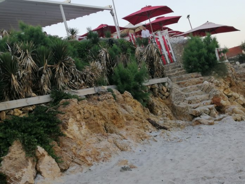 استعمال مواد البناء من اسمنت مسلح واجر وحجارة لتشييد أسوار بهدف حيازة أجزاء من البحر أو تشييد مدارج للنزول من المطاعم والمقاهي إلى شاطئ البحر في تعد صارخ على الفصل الرابع من القانون عدد 72 لسنة 1995 المتعلق بإحداث وكالة حماية و تهيئة الشريط الساحلي.