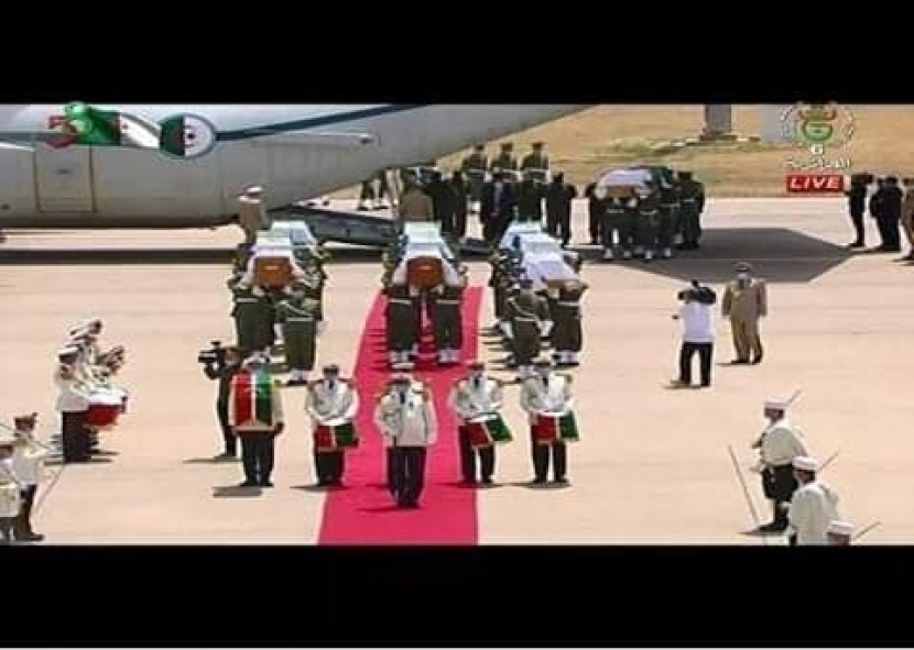 استقبل الرئيس الجزائري عبد المجيد تبون الجمعة 3 جويلية 2020 طائرةهرقل سي-130 القادمة من فرنسا حاملة على متنها رفات 24 مقاتلا جزائريا ضد الاستعمار الفرنسي، وحطت الطائرة في مطار الجزائر الدولي بعد الساعة الأولى بعد الظهر، رافقتها مقاتلات من الجيش الجزائري.