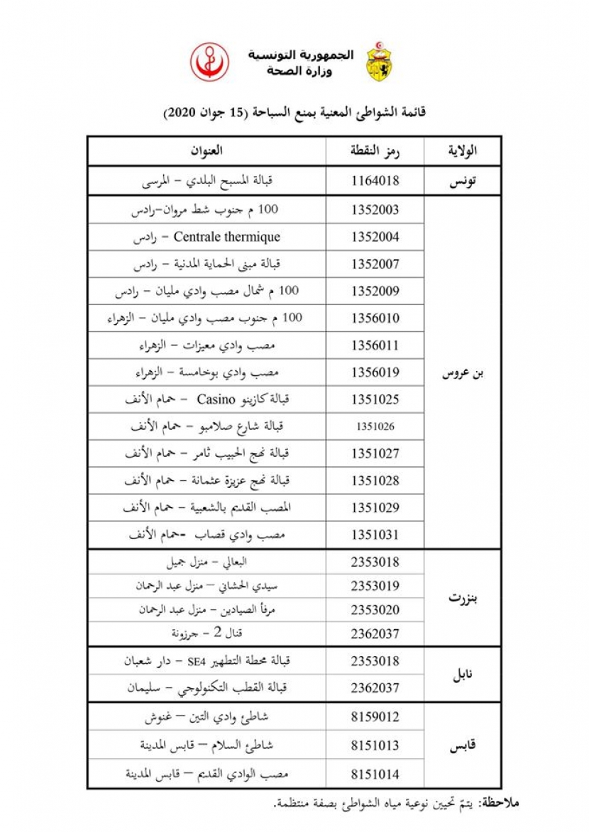 jasminsnews - وزارة الصحة تنشرقائمة الشواطئ الغير قابلة للسباحة