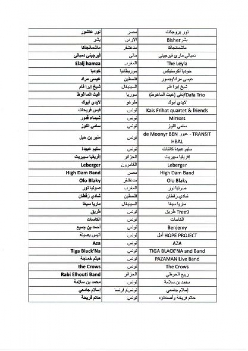 jasminsnews - الهيئة المديرة لأيام قرطاج الموسيقية تعلن عن نتائج فرز الترشحات للمشاركة بالمهرجان