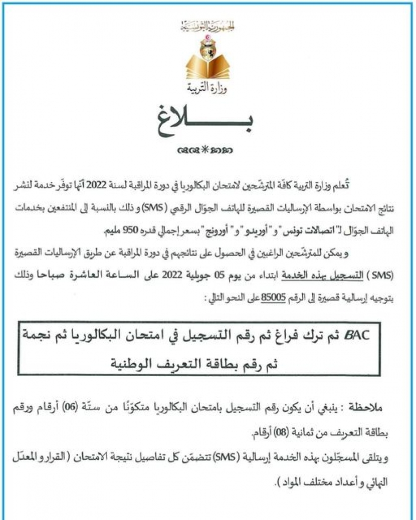 بداية من الغد : انطلاق التسجيل لتلقي نتائج الباكالوريا دورة المراقبة عبر الارساليات القصيرة