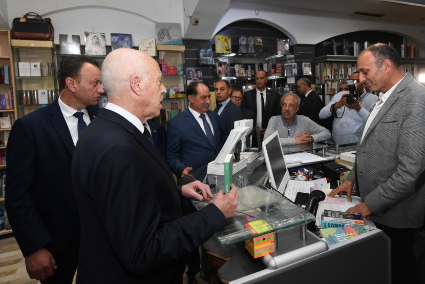 رئيس الجمهورية يؤدي زيارة إلى كل من مكتبة الكتاب والمقر القديم للشركة التونسية للتوزيع بالعاصمة