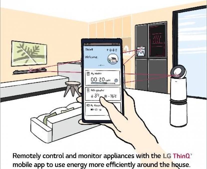 وفرت "إل جي" تجربة منزلية ذكية ومعززة عبر تطبيق الهاتف الذكي LG ThinQلتزود المستخدمين بطريقة سلسة لإدارة جميع أجهزة "إل جي" المزودة بخاصية الاتصال بشبكة Wi-Fiمن أي مكان وفي أي وقت. ويستطيع المستخدمون عبر استخدام التطبيق البقاء على اتصال بالمنزل عبر هواتفهم الذكية والتحكم بالأجهزة المنزلية عن بُعد أثناء تنقلهم، مما يوفر حلاً بسيطاً لإيقاف تشغيل الأجهزة بعد مغادرة المنزل بسرعة أو حتى مراقبة استخدام هذه الأجهزة أثناء التواجد خارج المنزل.
