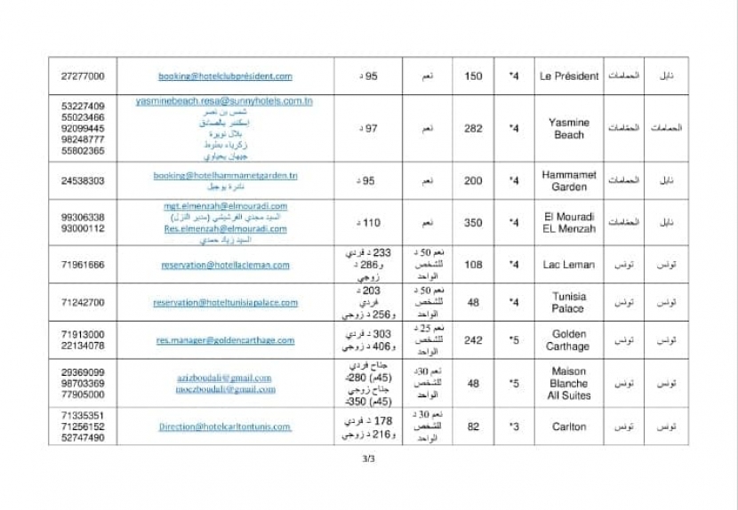 ? 1- الإلتزام بالحجر الصحي الإجباري لمدّة 7 أيام بإحدى النزل المخصّصة للغرض ضمن القائمة المصاحبة وعلى نفقتهم. لذا فعليهم الإستظهار عند التسجيل للسفر أو قبل اجتياز المعابر البرية: