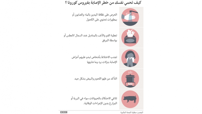 - تغطية الفم والأنف عند العطس أو السعال وغسل اليدين بعدها لمنع انتشار الفيروس.