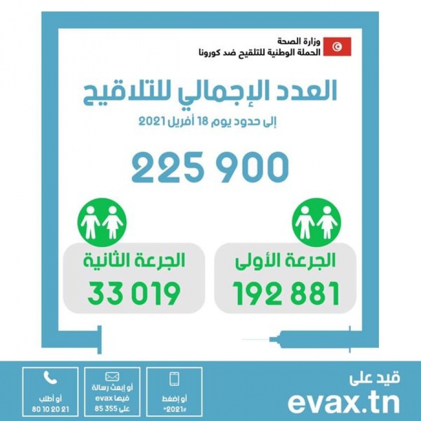 عدد الملقحين ليوم الاحد 18 افريل 2021 : 10118