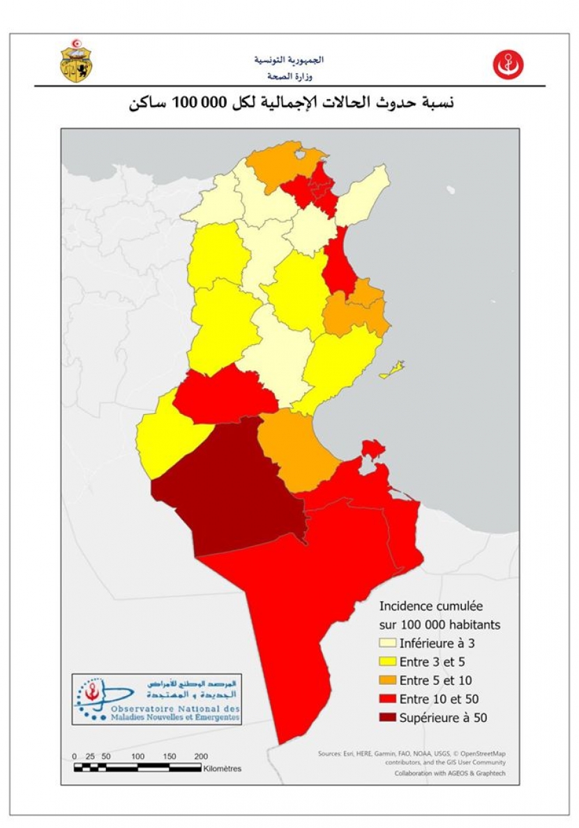 وقد تم تسجيل 09 تحاليل إيجابية من بينها 05 حالات إصابة جديدة وافدة و04 تحاليل إيجابية لحالات إصابة سابقة لا تزال حاملة للفيروس، ليصبح العدد الجملي للمصابين بهذا الفيروس، وذلك بعد التثبت من المعطيات وتحيينها، 1186 حالة مؤكدة موزعة كالآتي: 1046 حالة شفاء و50 حالة وفاة و90 حالة إصابة لا تزال حاملة للفيروس وهي بصدد المتابعة من بينها 01 حالة إصابة حاليا بالمستشفى.