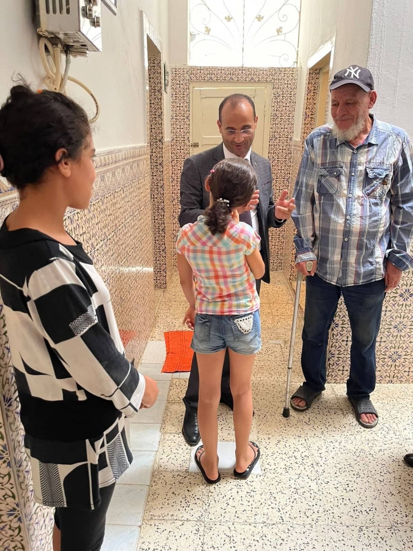 عملا بتوصيات السيّد رئيس الجمهوريّة قيس سعيد المنسجمة مع مبادئ الدستور الجديد تعهّد وزير الشؤون الاجتماعية السيد مالك الزاهي بوضعية العائلة القاطنة بحي هلال والتي اشتكى أفرادها إلى السيد رئيس الجمهورية خلال زيارته لحي هلال من ظروف اجتماعية صعبة حيث يقطن جميع أفراد العائلة في غرفة واحدة على وجه الفضل ولا عائل لهم سوى الأم التي لا تتمتع بموطن شغل قارّ تحوّل اليوم 18/08/2022 كل من رئيس الهيئة العامة للنهوض الإجتماعي السيد إبراهيم بن إدريس وممثل الإتحاد التونسي للتضامن الاجتماعي السيد منير الحاجي إلى حي هلال لمعاينة عملية تمكين أفراد العائلة من مسكن لائق ومواد غذائية وتجهيزات منزلية ومستلزمات مدرسية والموافقة على طلب الأب في بعث مشروع مورد رزق قار بما يضمن حق العائلة في العيش الكريم .