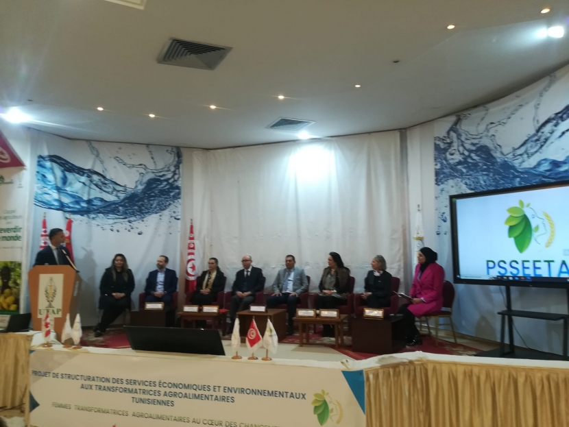 شاركت السيدة آمال بلحاج موسى، وزيرة الأسرة والمرأة والطفولة وكبار السن، رفقة السيد محمود إلياس حمزة وزير الفلاحة والموارد المائية والصيد البحري والسيدة ليلى الشيخاوي المهداوي وزيرة البيئة والسيد نور الدين بن عياد نائب رئيس الاتحاد التونسي للفلاحة والصيد البحري في إطلاق مشروع هيكلة الخدمات الاقتصادية والبيئية لفائدة الفلاحات الناشطات في مجال تحويل المنتوجات الفلاحية.